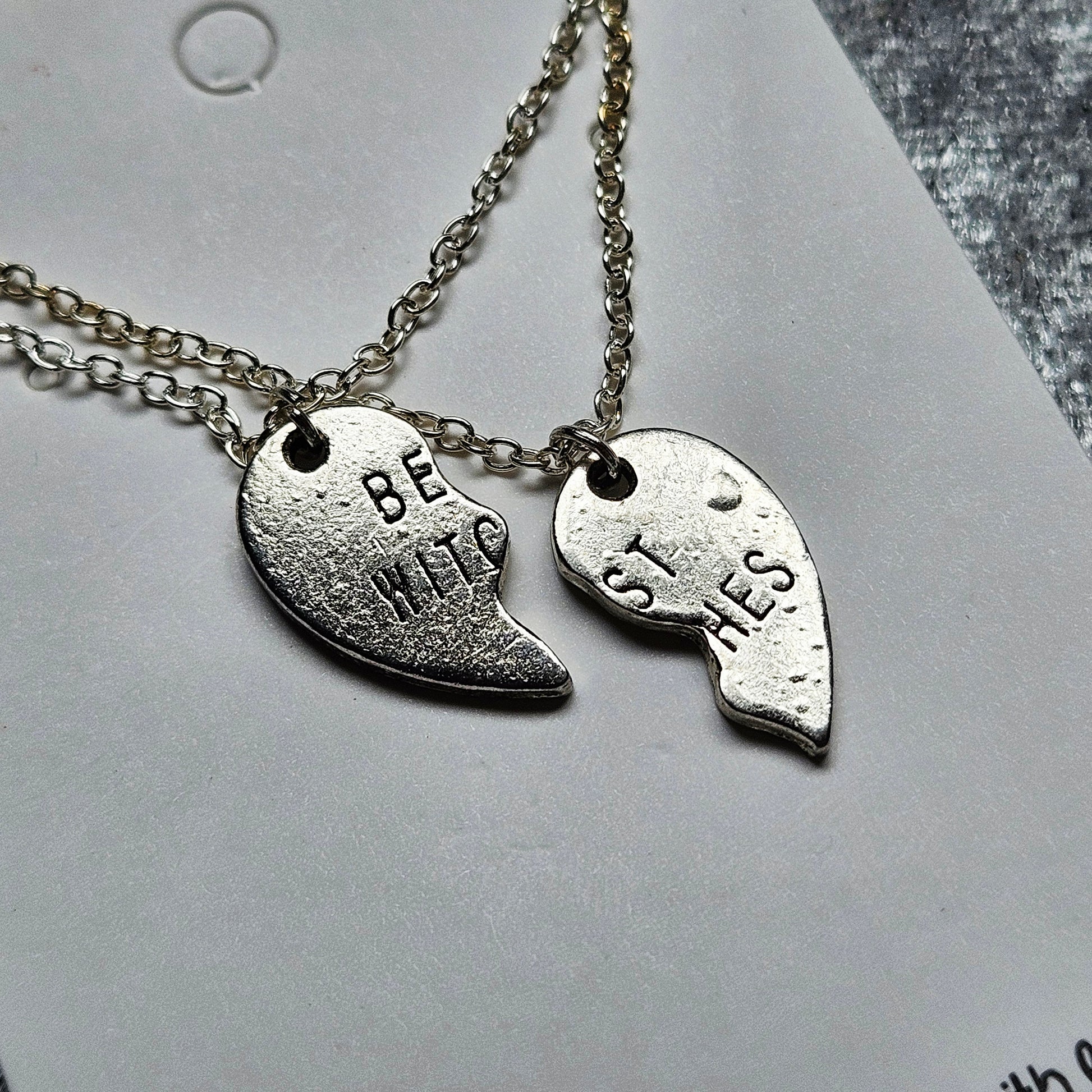 Celebrate your unbreakable bond with these charming sterling silver necklaces. Each half of the heart pendant features one part of the playful phrase "best witches," making them the perfect gift for best friends who share a little magic and mischief. The sleek sterling silver chains add timeless shine, keeping your friendship close to the heart wherever you go.