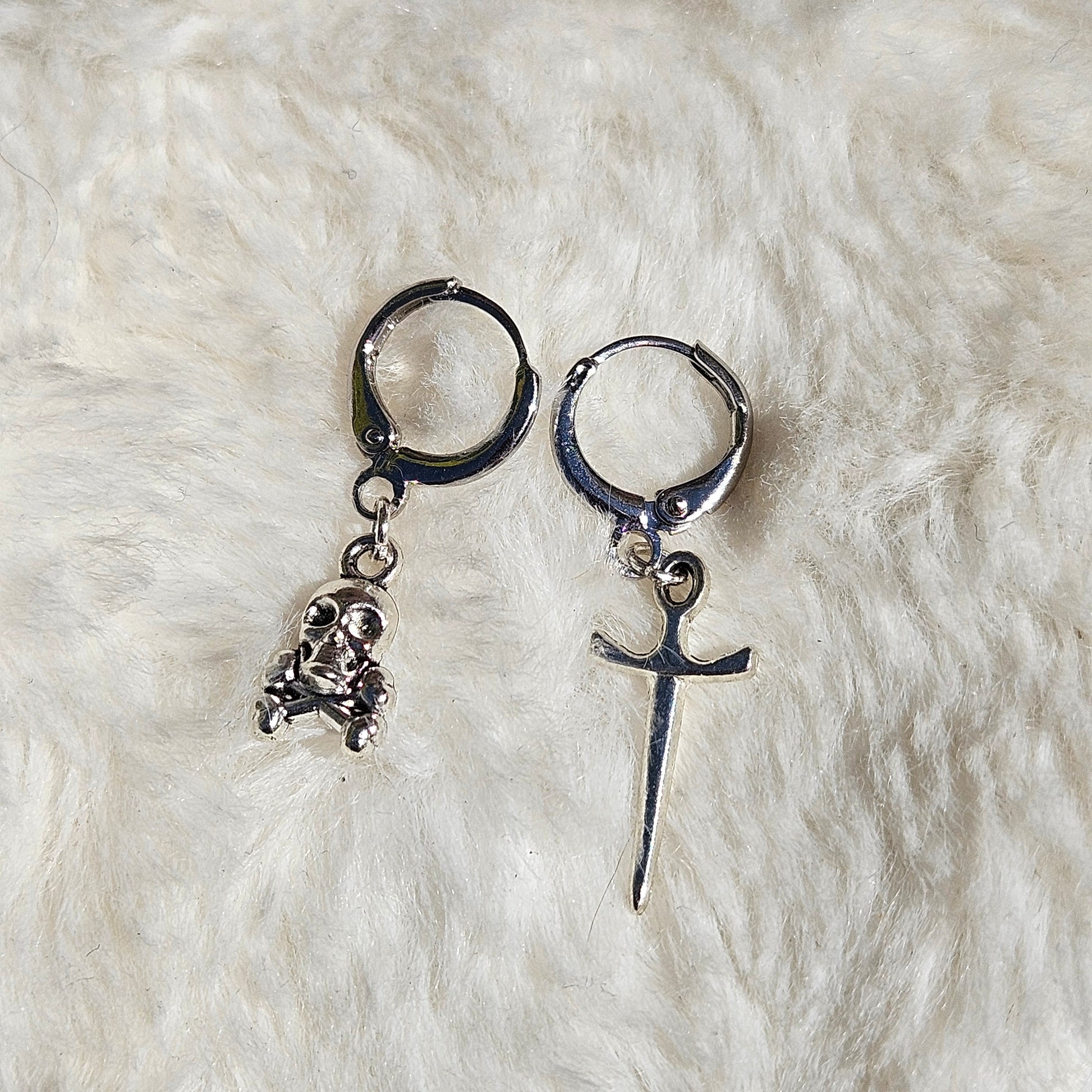 Add a touch of pirate playfulness to your look with these skull and crossbones and dagger earrings. Perfect for any swashbuckling outfit or to add a little edge to any ensemble.