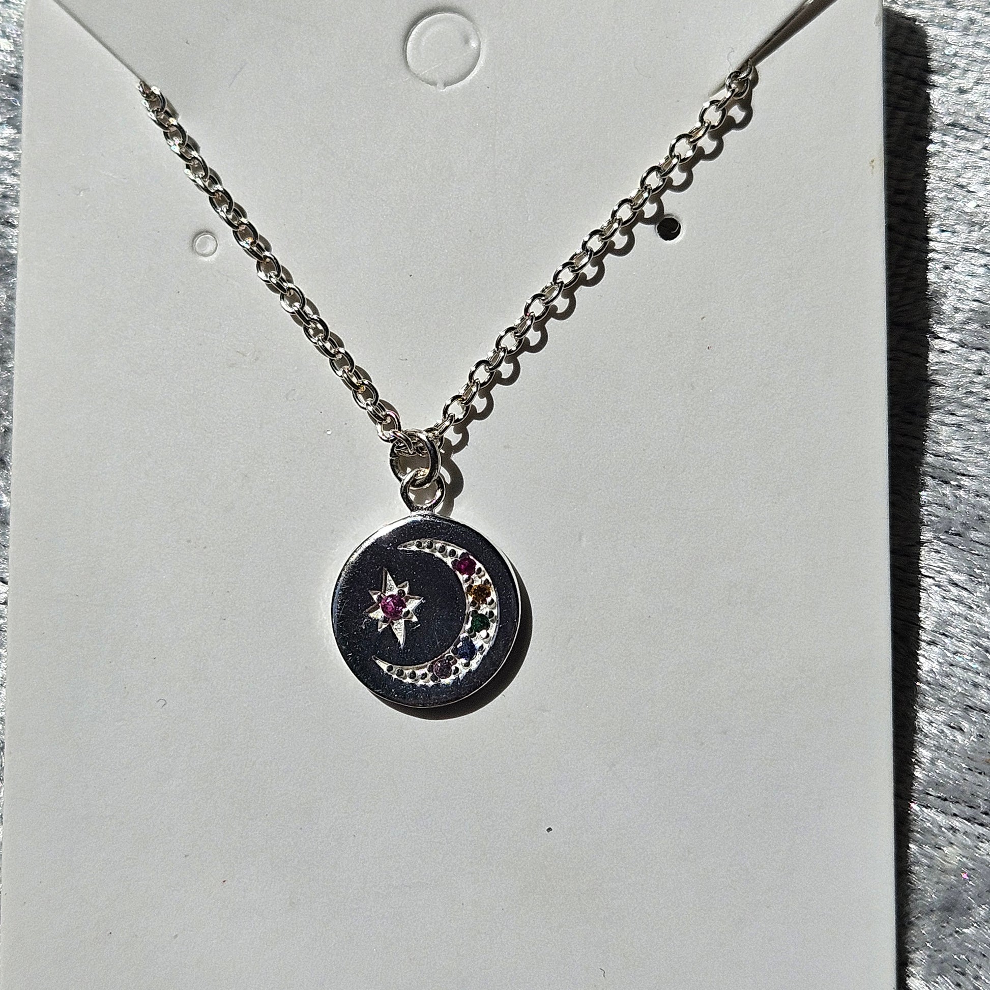 Rainbow Cubic Zirconia Moon and Star Necklace