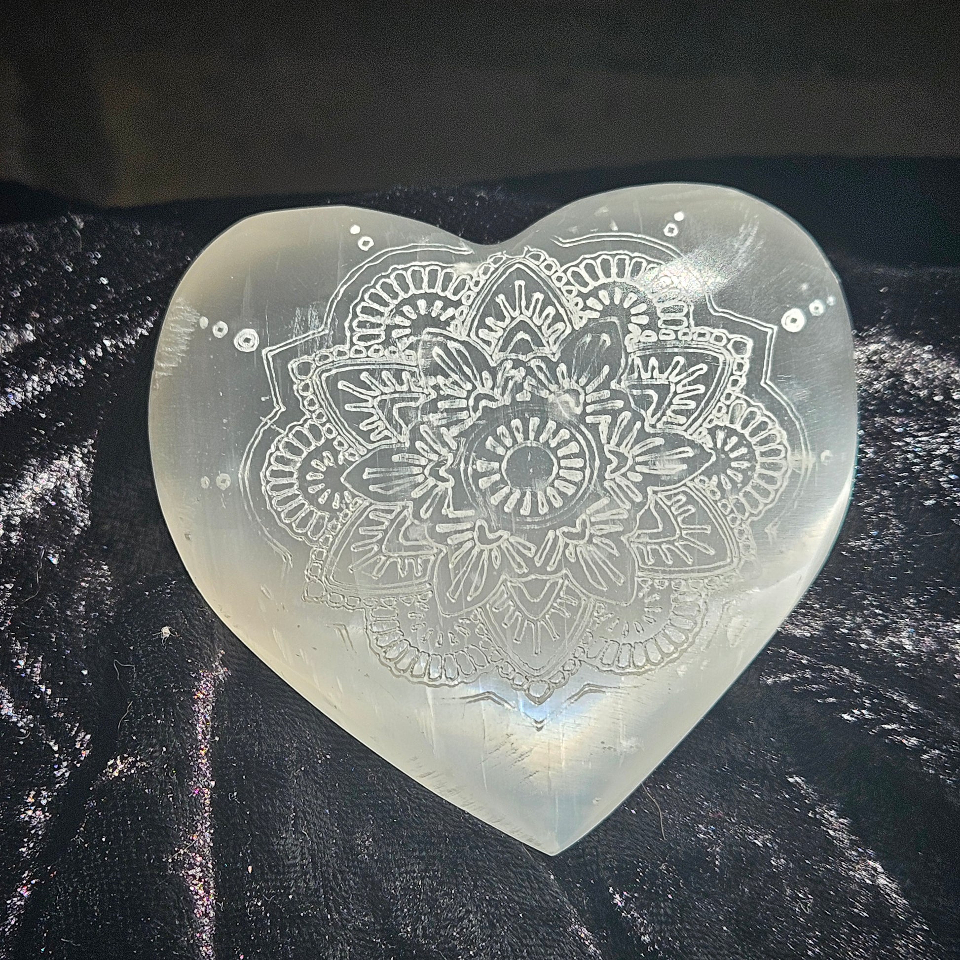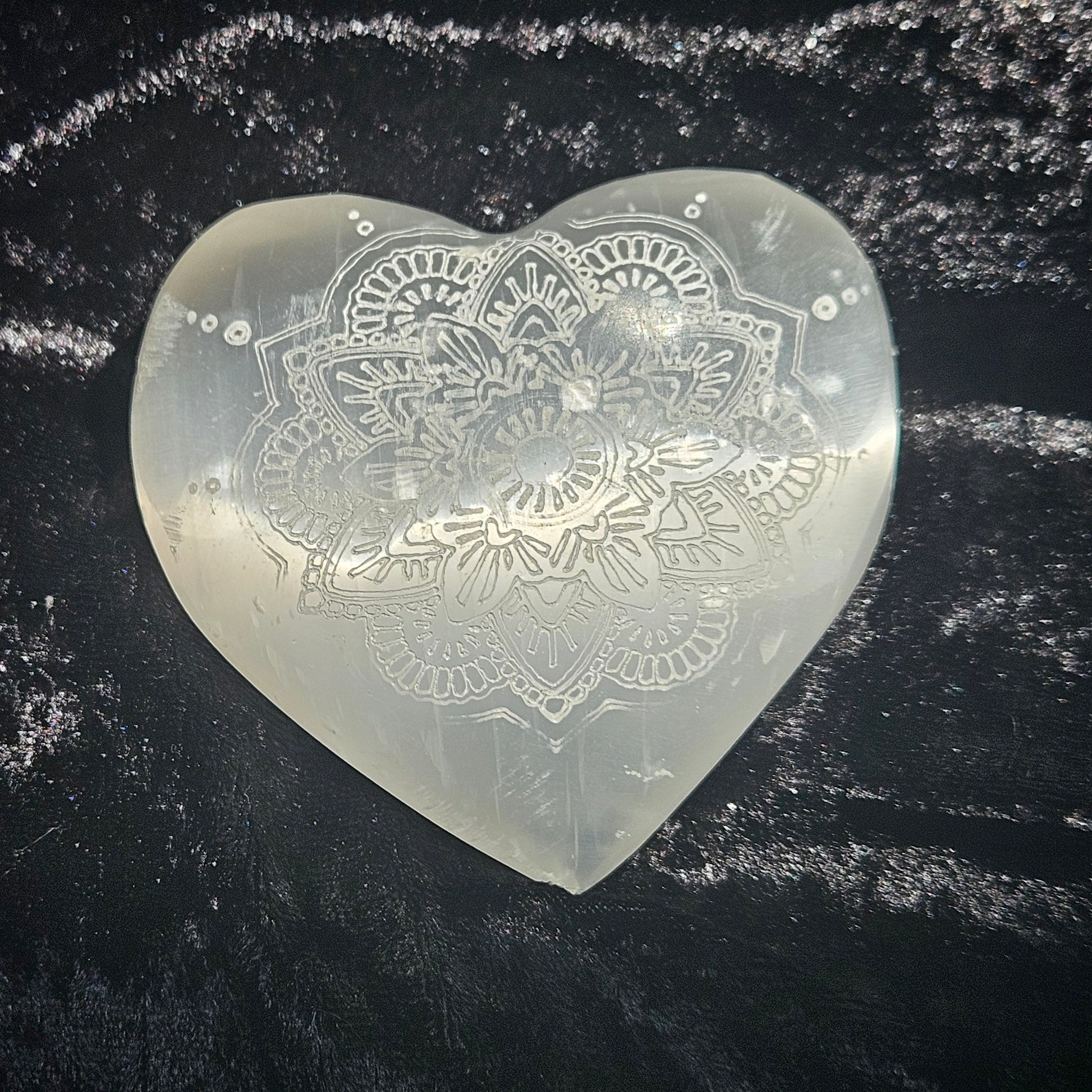 Discover the magic of our Selenite Heart, featuring a charming mandala design that adds a touch of whimsy to your space. This smooth, radiant crystal heart not only looks delightful but also brings calming energy to your day. Perfect for gifting or keeping close as a playful reminder to stay centred and joyful.