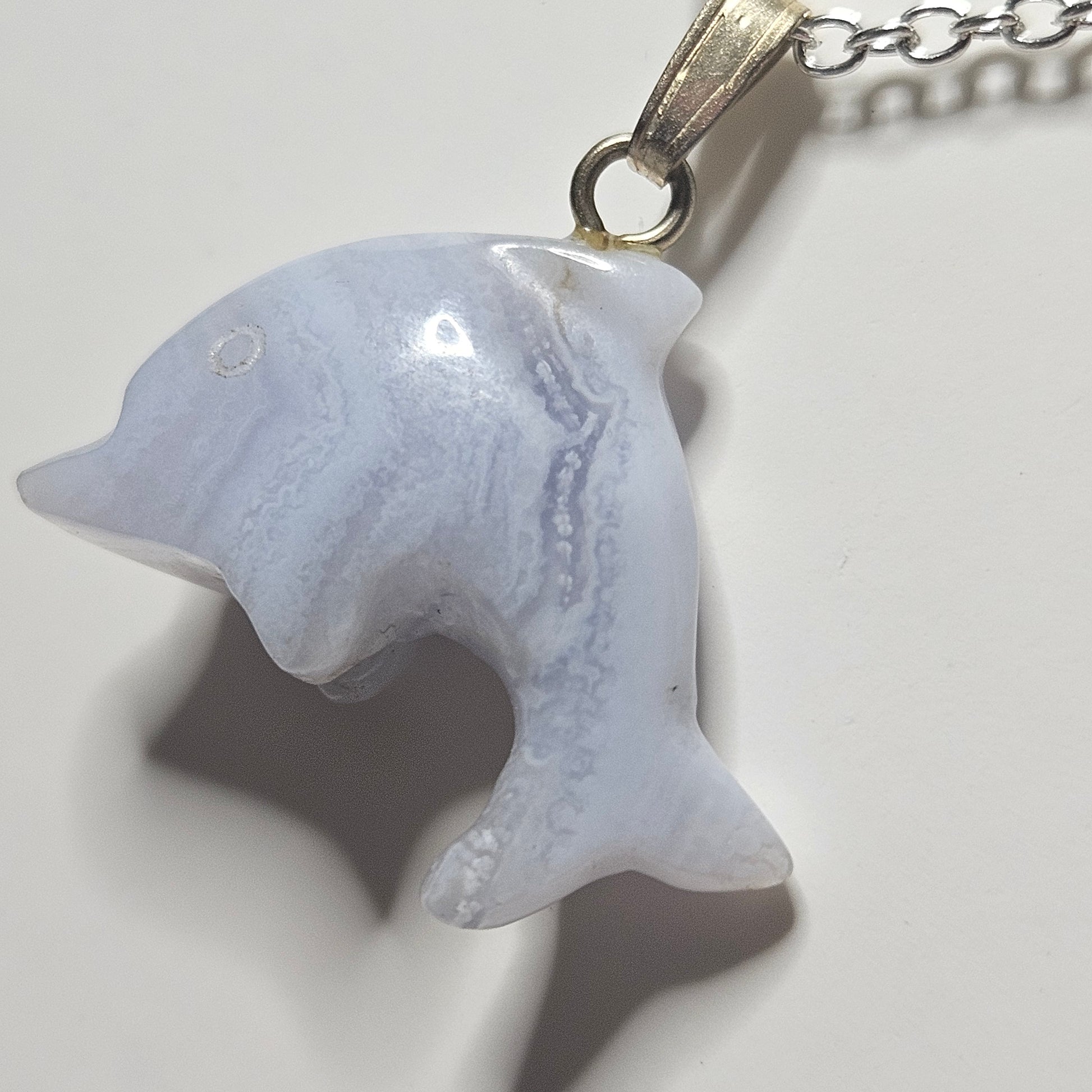 Sterling Silver Blue Lace Agate Dolphin Necklace