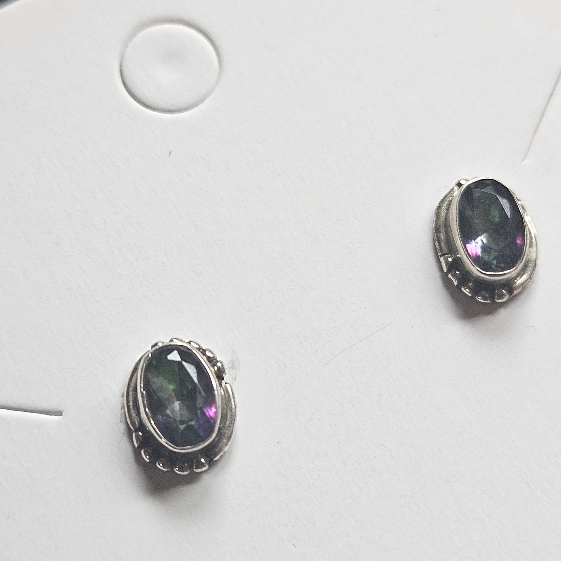 Add a splash of magic to your day with these Sterling Silver Mystic Topaz Studs! Each sparkling stone shifts colours with every move, catching the light—and eyes—wherever you go. Crafted from shiny sterling silver, they're perfect for turning a simple look into something unforgettable. Playfulness meets elegance in these charming studs!