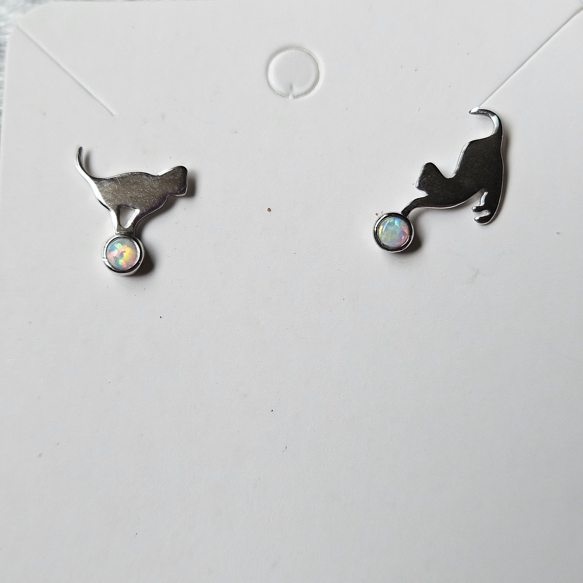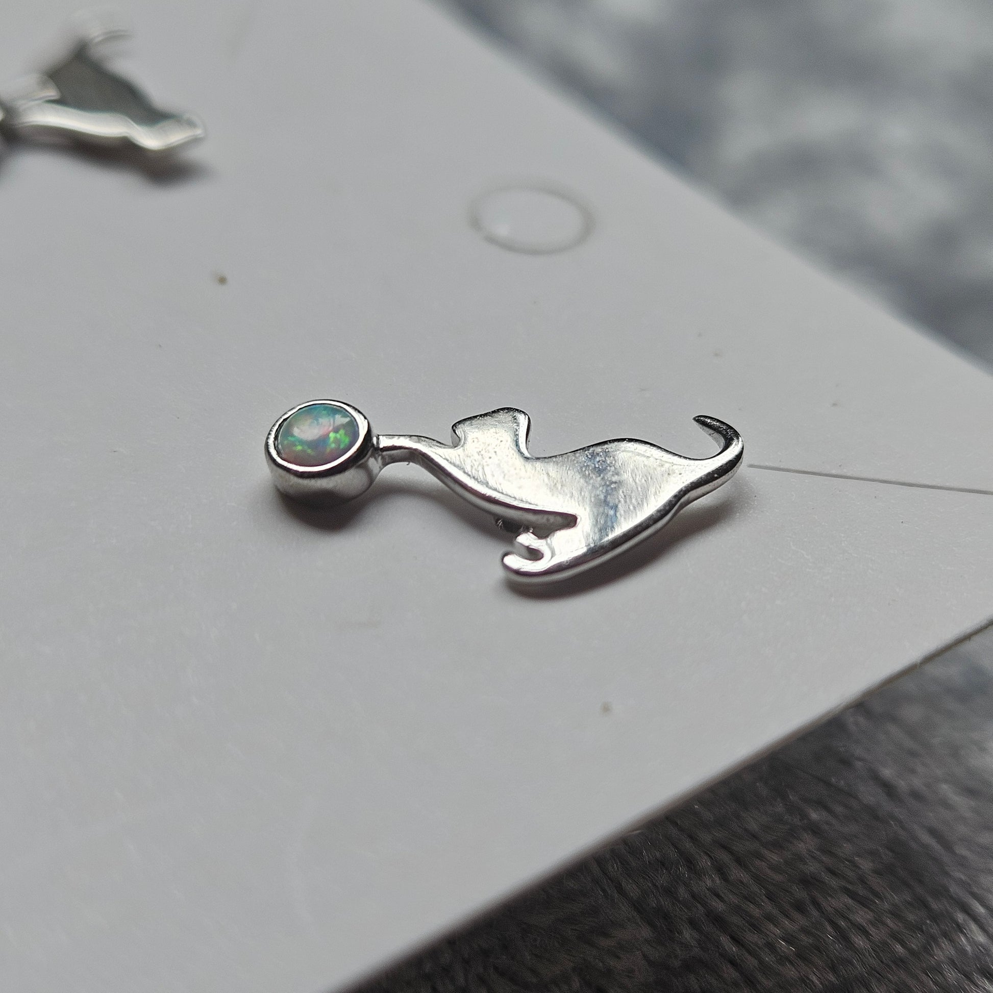 These sterling silver earrings capture the playful charm of cats batting at shimmering opal balls. Crafted with attention to detail, they add a whimsical touch to any outfit while showcasing the iridescent beauty of opal. Perfect for cat lovers who enjoy a bit of sparkle and fun in their jewellery collection.