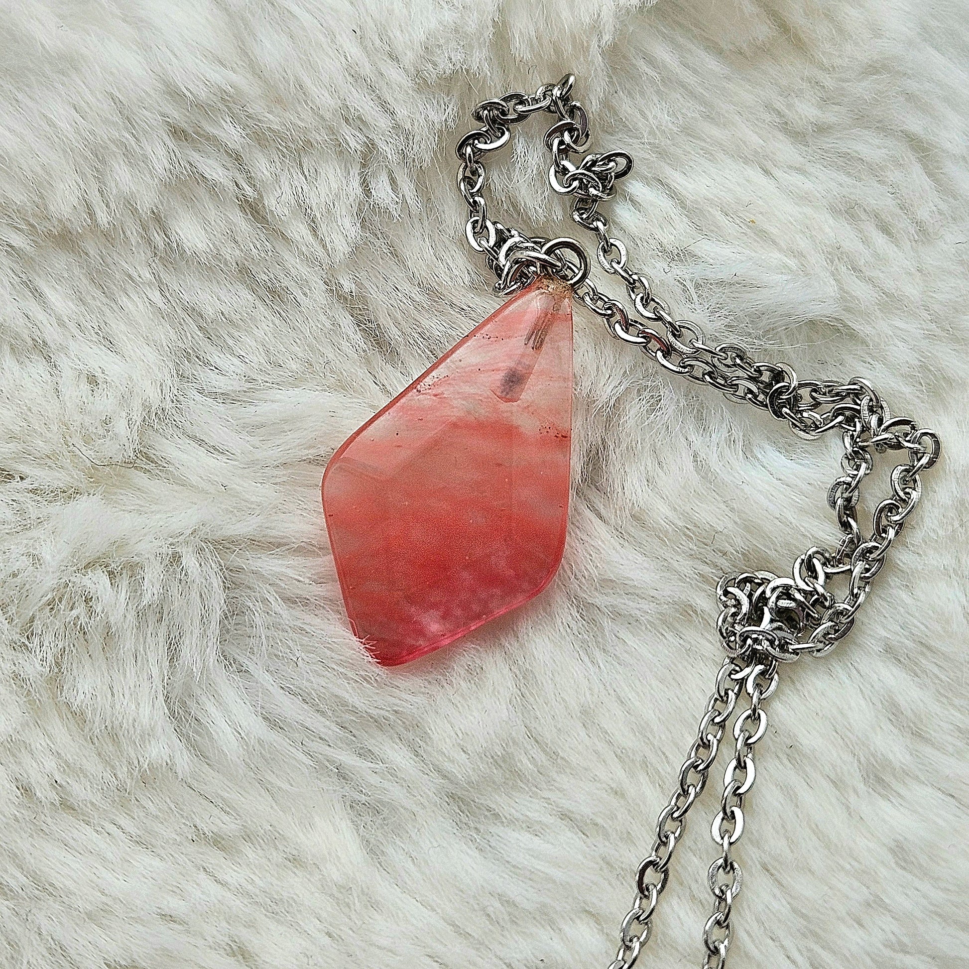 Get in tune with your playful side with our strawberry quartz necklace. Featuring a vibrant pink quartz charm, this necklace is perfect for adding a pop of color to any outfit. Embrace your unique style with this quirky and fun accessory.