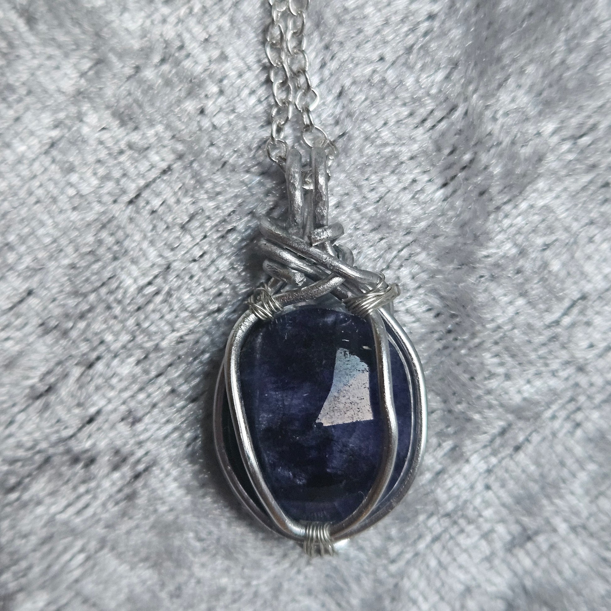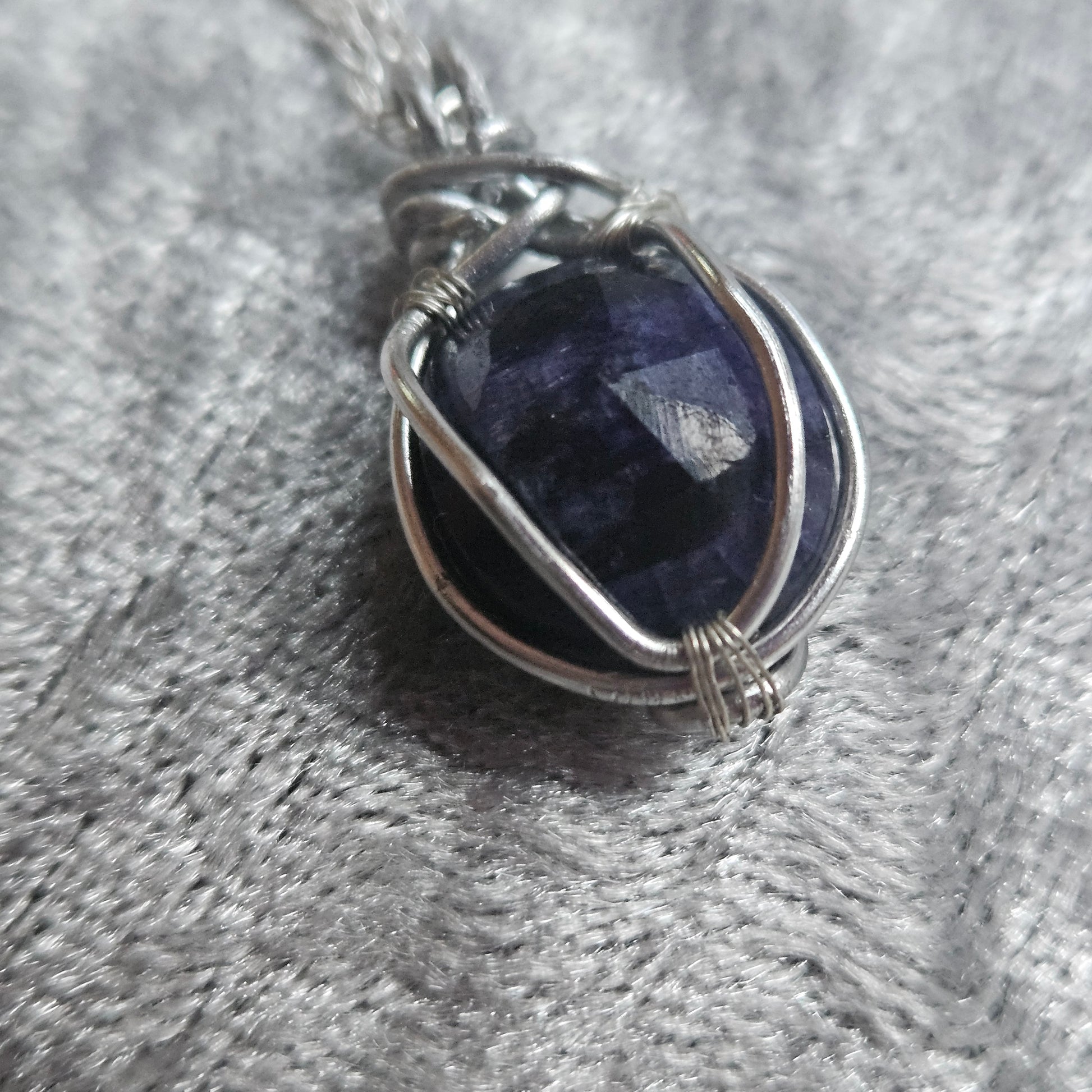 Crafted by hand, this Wire Wrapped Sapphire boasts a unique and intricate design that adds a touch of elegance to any outfit. The sapphire stone is expertly wire wrapped, showcasing its natural beauty and durability. Elevate your style with this stunning piece.