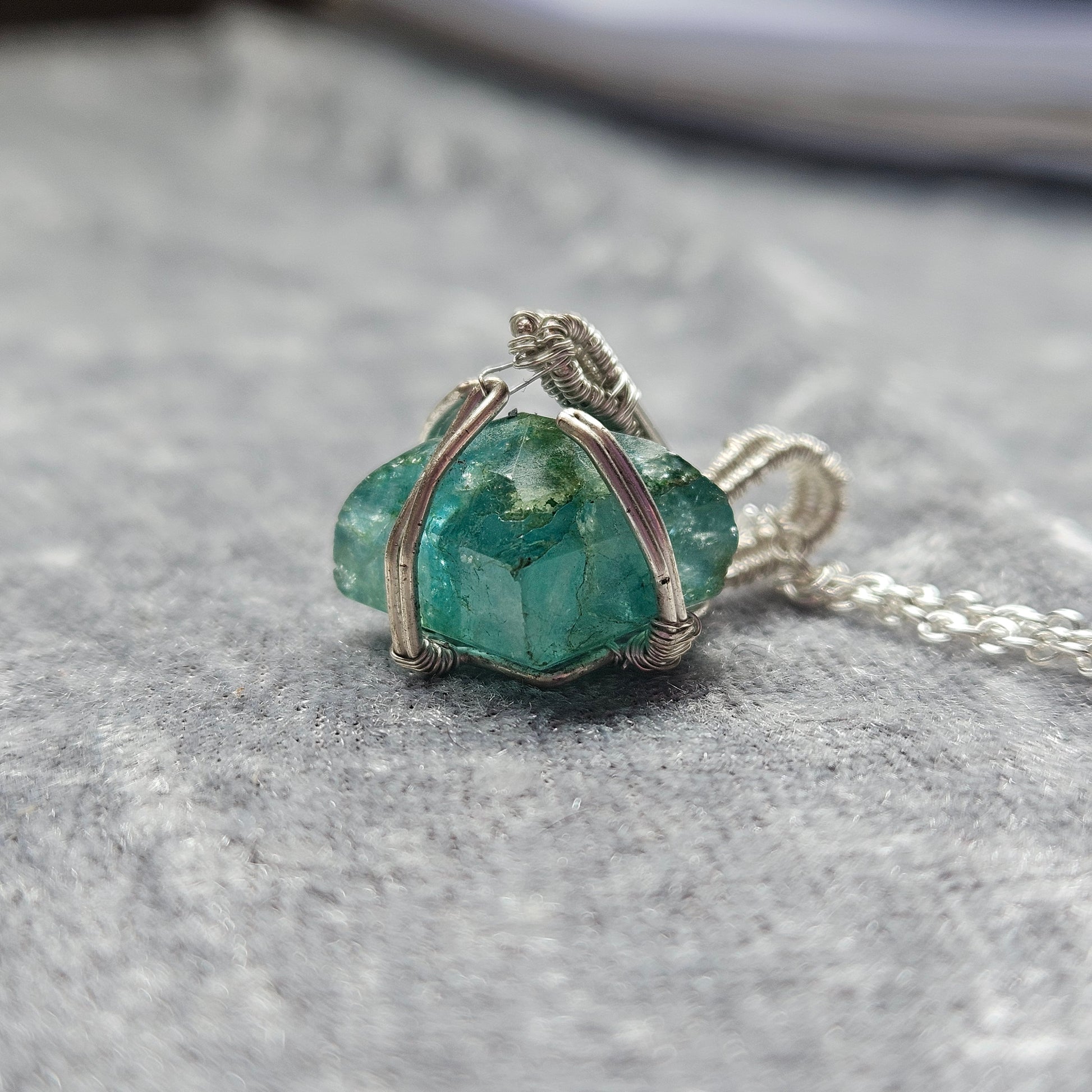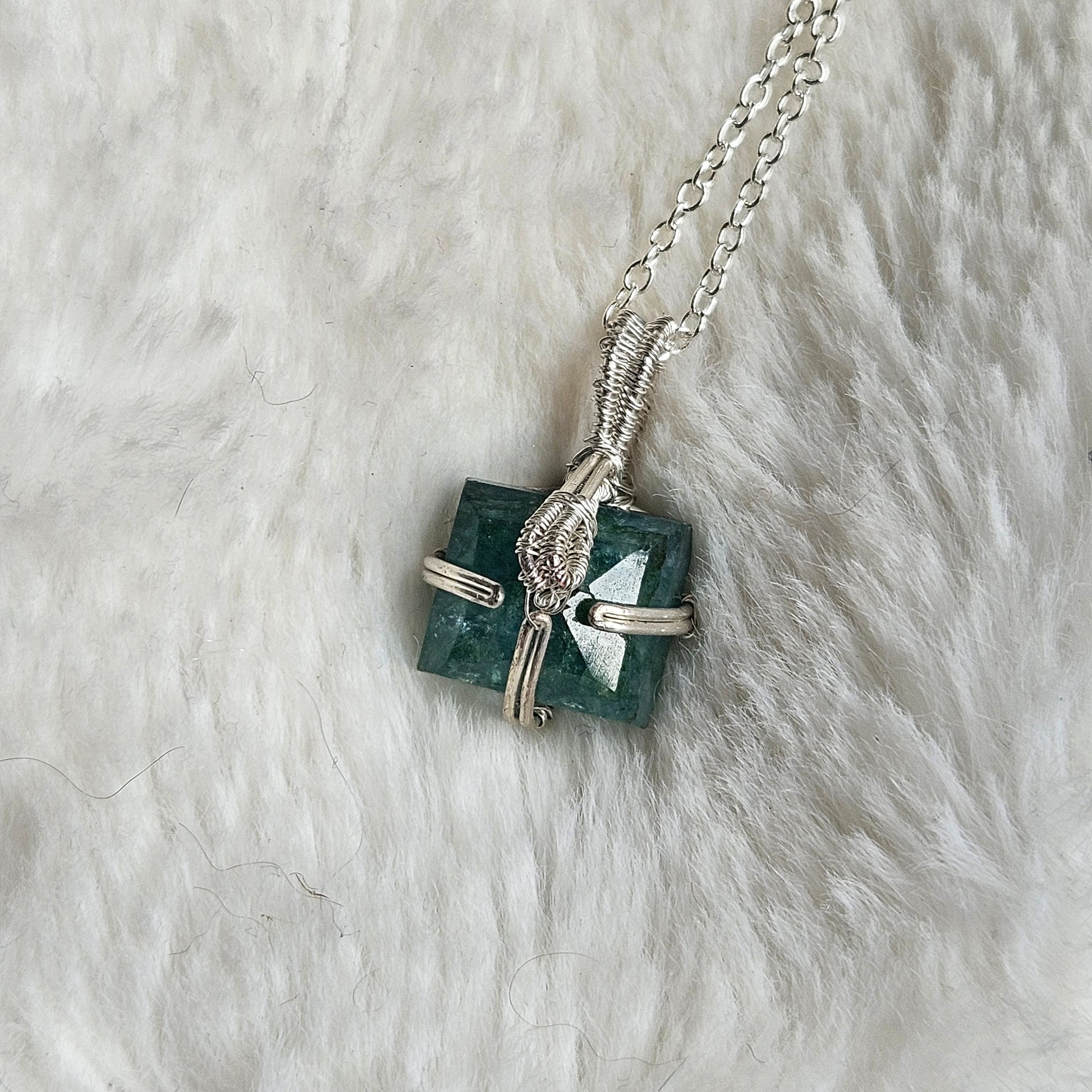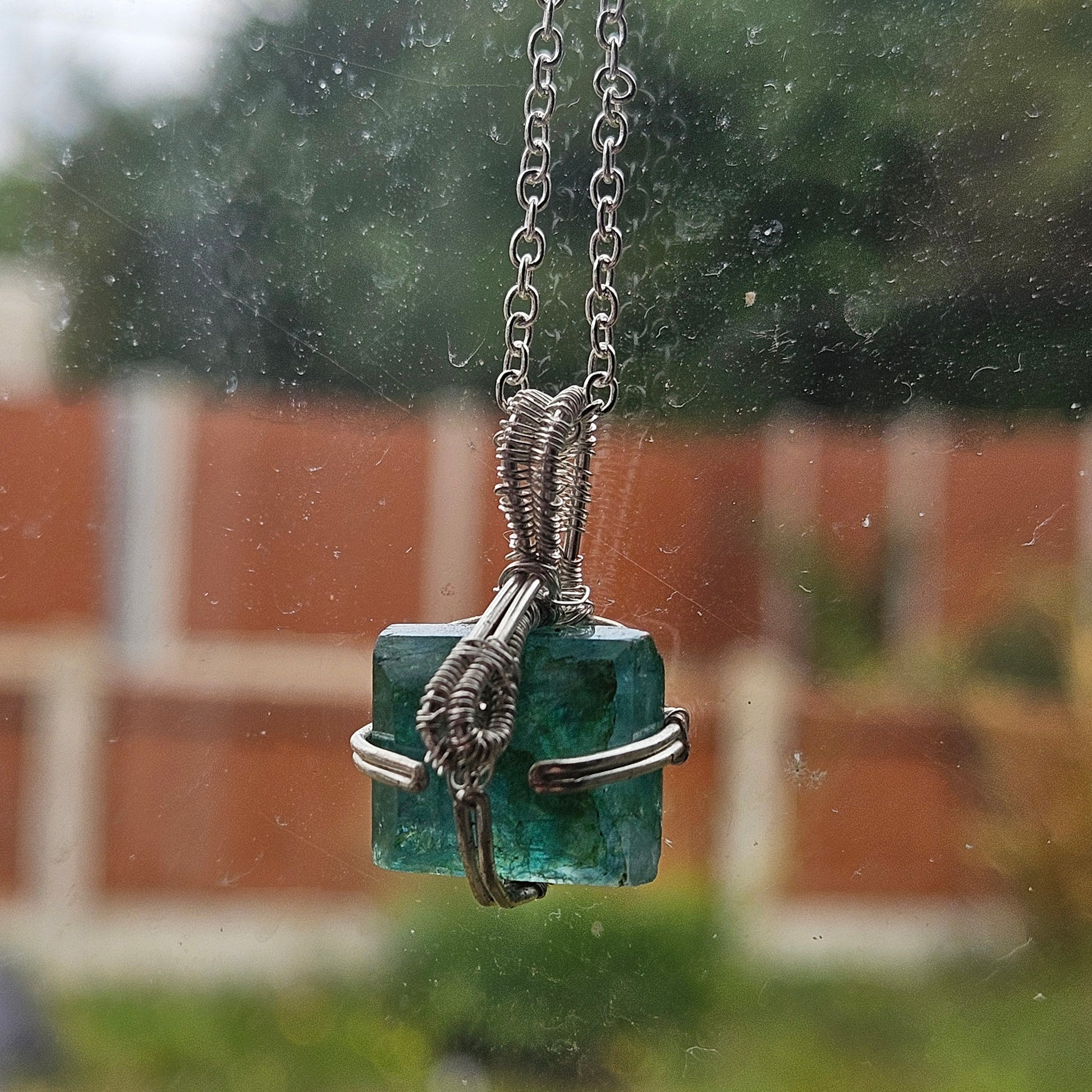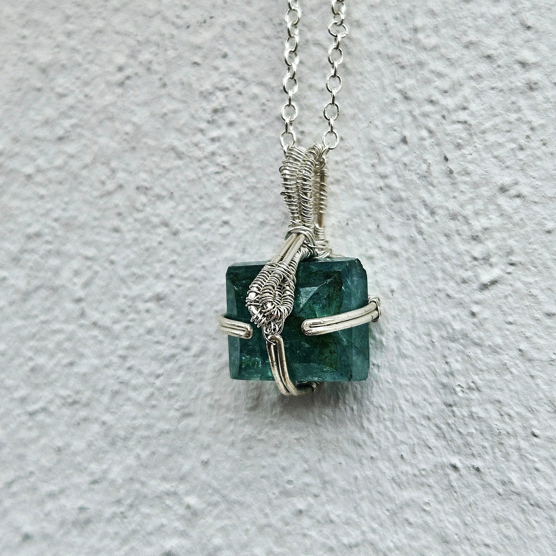 Add a pop of vibrant green to your style with this playful wire-wrapped necklace featuring a square emerald stone. Its unique design combines nature’s brilliance with artistic flair, making it a charming conversation starter for any outfit. Perfect for those who love a little sparkle with personality!