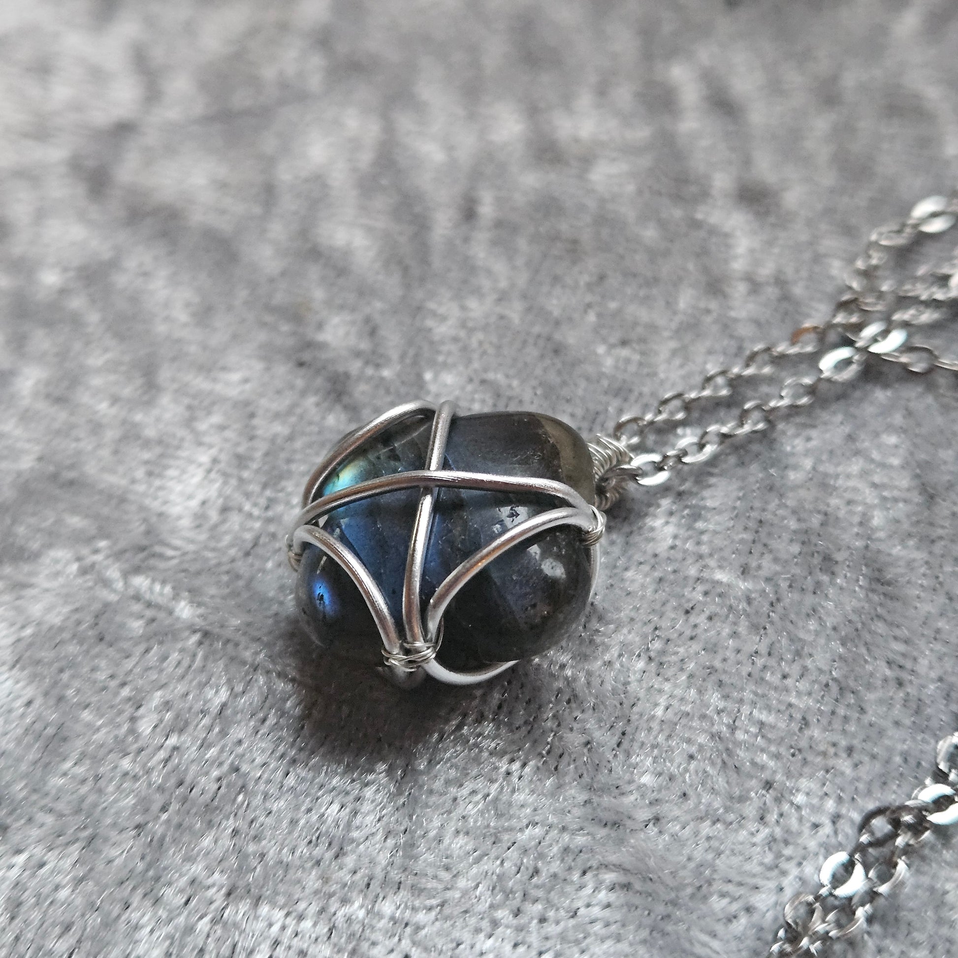 Wrap yourself in the mystical elegance of this Labradorite Necklace, hand-wrapped with wire to enhance its natural properties. Embrace the transformative energy of this stunning stone and add a touch of magic to any outfit. A must-have for any crystal lover!